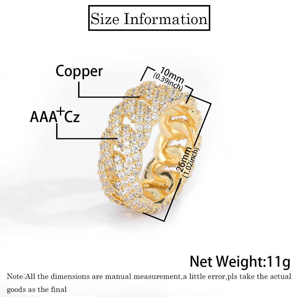 Hip Hop Ear Accessories 10mm Cuban Ring Zircon Men